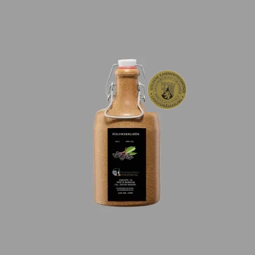 Holunderlikör 0,5 l (25%) im Tonkrug – Goldene Kammerpreismünze