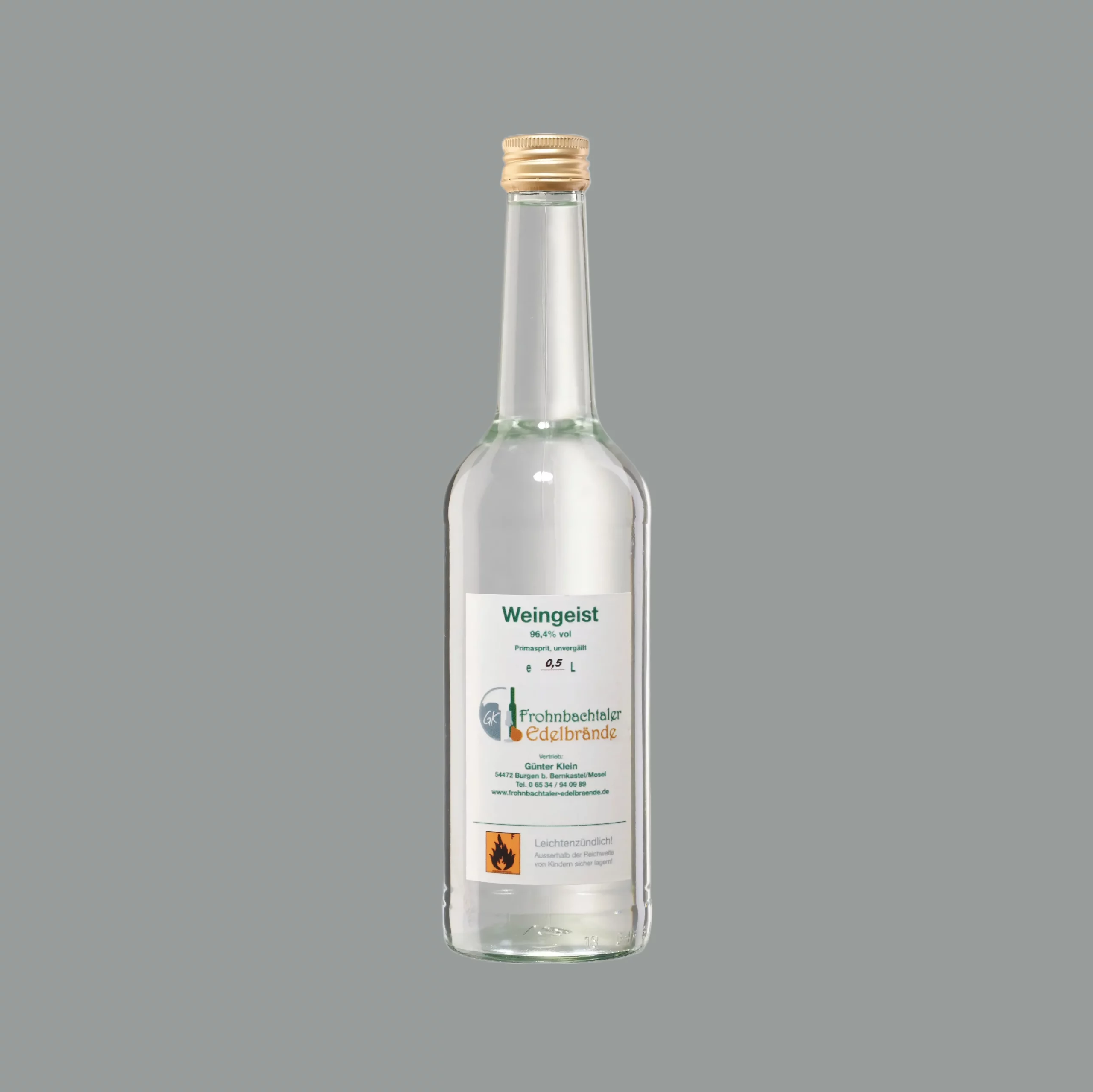 ist die ideale Basis für die Herstellung von Likören, Ansatzschnäpsen, Desinfektioonsmittel sowie Tinkturen. Bei Frohnbachtaler Edelbränden erhalten Sie analytisch reinen, methanolfreien und unvergällten Weingeist, der geruchs- und geschmacklos ist – perfekt, um den Charakter Ihrer Eigenkreationen nicht zu beeinflussen.